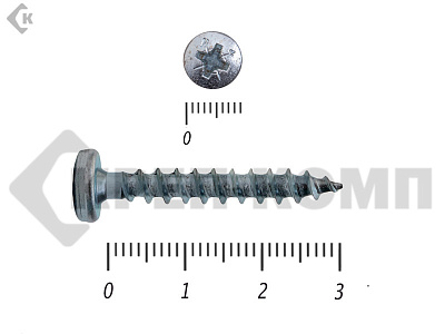 Верхняя головка самореза – плоская с крестообразным шлицом. Шлицы бывают двух видов: