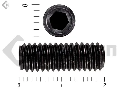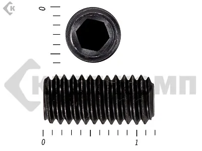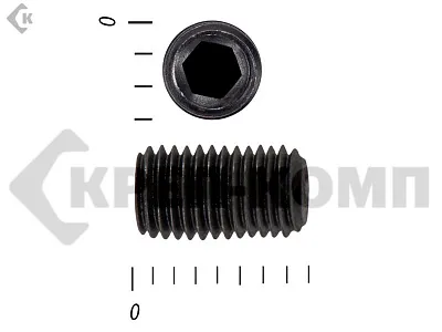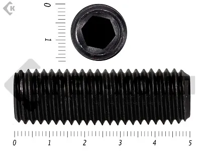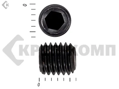 Винт DIN 913 установочный с внутренним шестигранником и плоским концом. Конец установочного винта имеет специальную форму, служащую для фиксации изделий относительно друг друга. Для передачи крутящего момента винт установочный din 913 имеет внутренний шестигранник. Этот вид ключа позволяет приложить большое усилие к винту, поэтому установка производится максимально прочно и надежно. Винт имеет полную метрическую резьбу и по своим характеристикам является аналогом стандартов ISO 4026 и ГОСТ 11074.